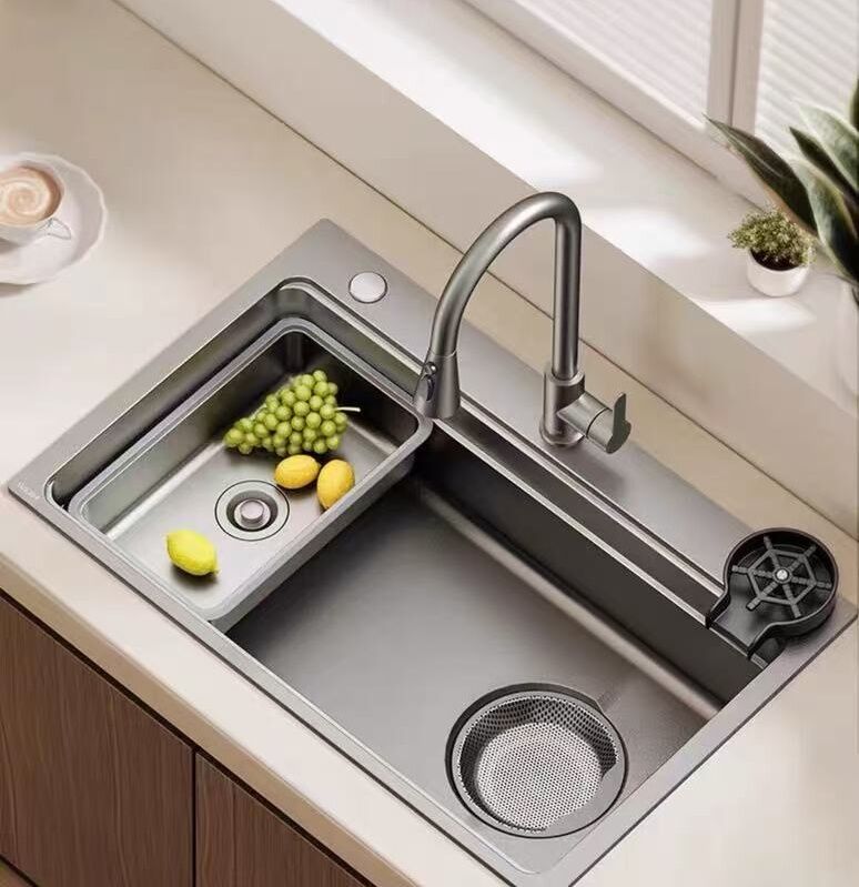 2025 Handmade 304 Stainless Steel Kitchen Sink Counter Mounting Three Holes Faucet Single Bowl Other Accessories Included