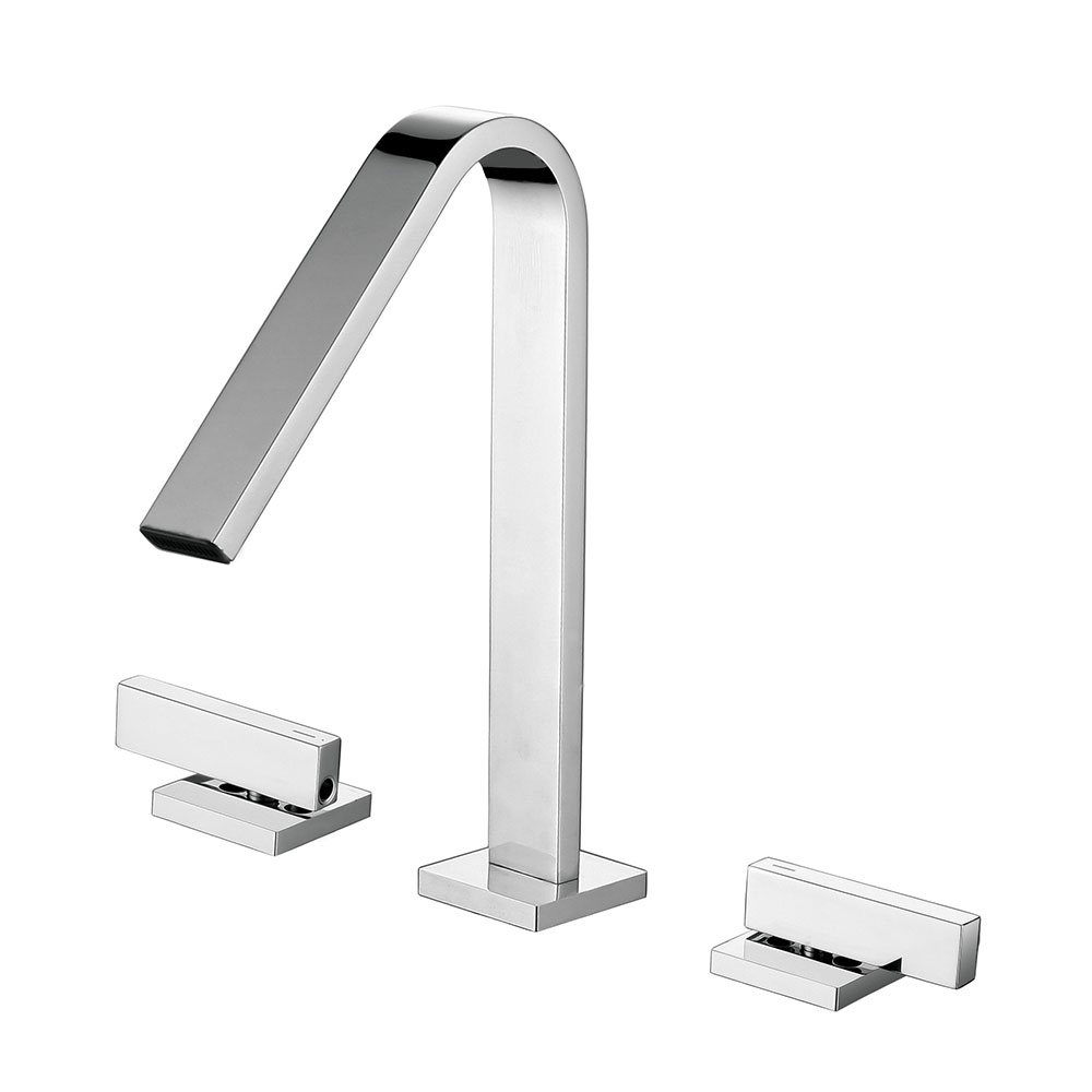 3 Hole Bathroom Curved Spout Wall Mounted Brass Hot and Cold Water Brushed Nickel Wash Basin Faucets