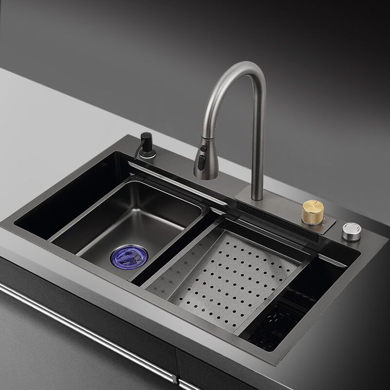 304 SS Modern Single Bowl Nano Black Kitchen Sink with Double Rainfalls