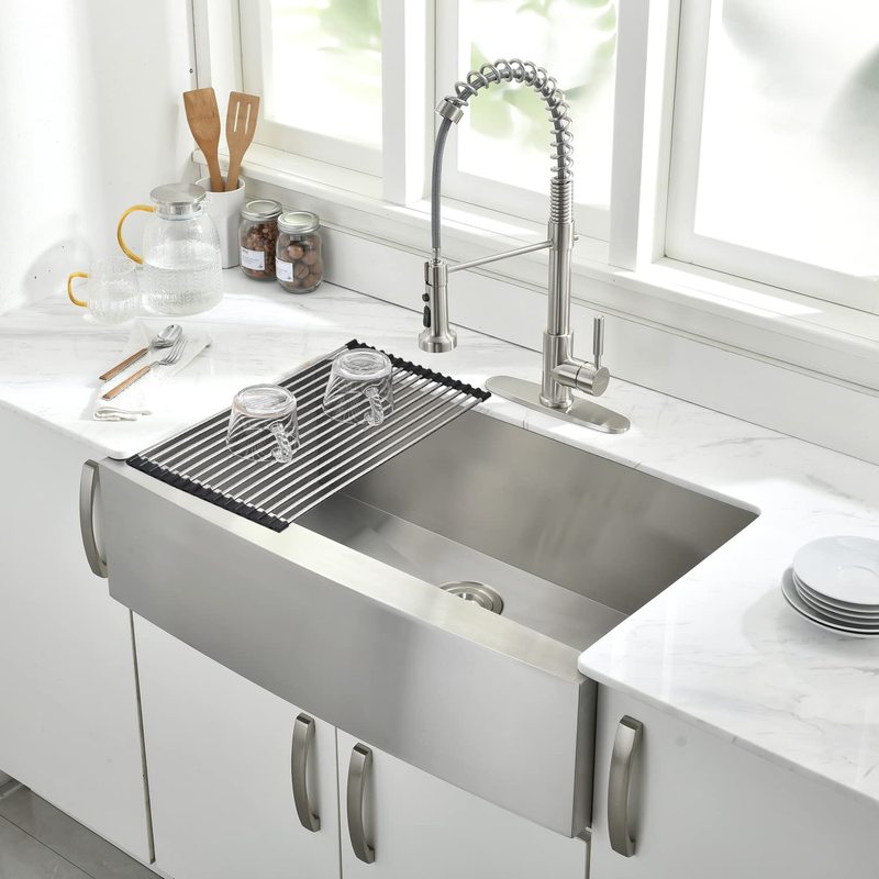 Apron Front Kitchen Sink 18 Gauge Stainless Steel Single Bowl Handmade Modern Farm Style Sink