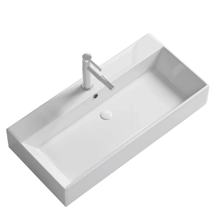 Faucet Hole Rectangular Countertop Bathroom Sink Big Size Modern Above Counter White Porcelain Ceramic Vanity Art Basin Lavabo