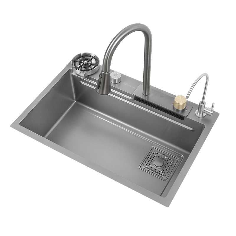 Gun Gray Kitchen Sink with Flying Rain Faucet and Stainless-steel Drain Basket Applicable to Hotel Kitchen Restaurant