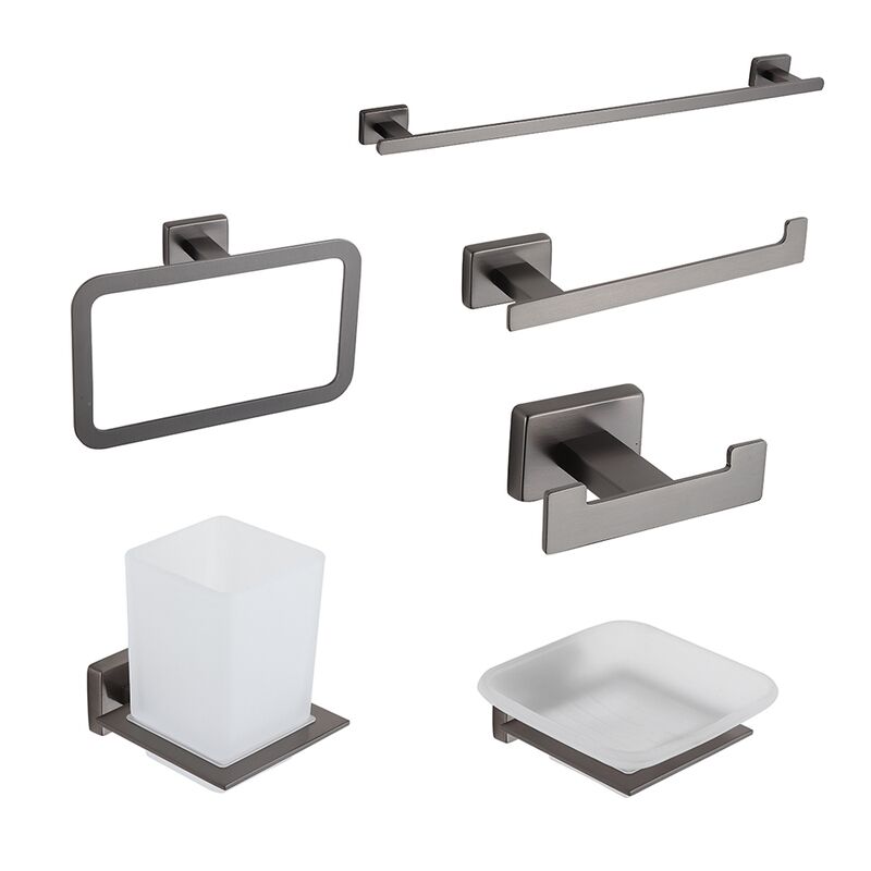 Gun Grey Square Design Wall Mounted Bathroom Hardware Accessories Set