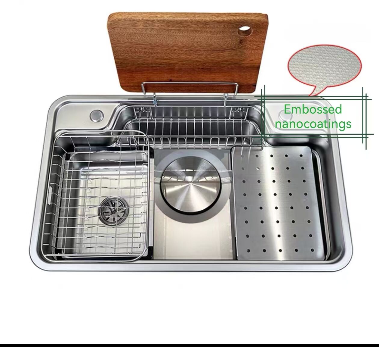 Large Single Bowl Kitchen Sink with Faucet Three Holes Multi-Purpose Design Includes Accessories Brushed Stainless Steel