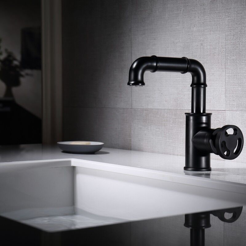 Matte Black Basin Mixer Faucet Single Hole Brass Basin Tap Deck Mounted Industrial Bathroom Sink Faucet