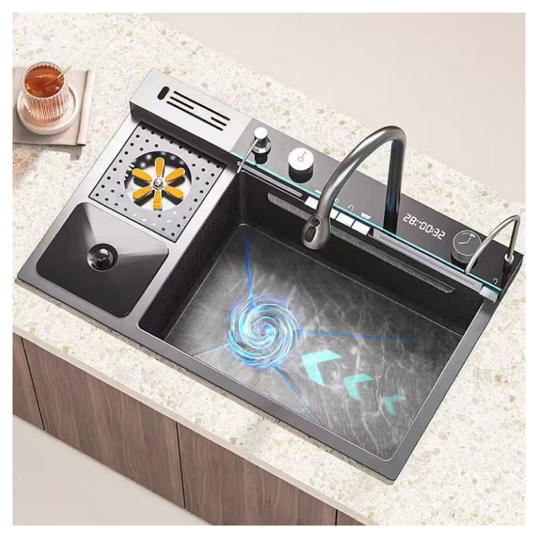 Modern Multi-Functional Stainless Steel Kitchen Faucet Set Waterfall Big Single Bowl