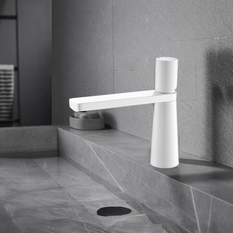 Modern Vanity Faucet Matte White Wash Basin Faucet Single Handle Deck Mounted Brass Bathroom Sink Tap