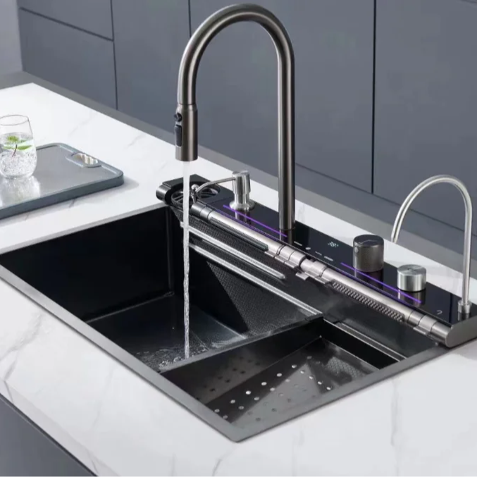Nano Blue Whale Waterfall Smart Kitchen Sinks Stainless Steel Modern Pull Out Kitchen Sink