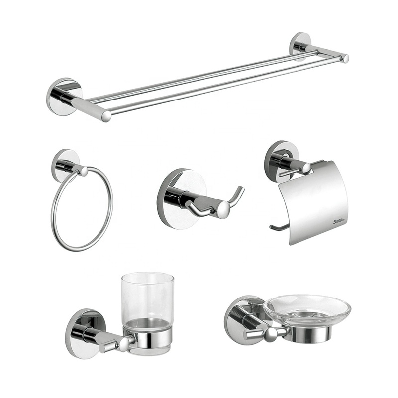 Bathroom Accessories Set Toilet Paper Holder Tumbler Soap Dish Shape with Stainless Steel 304 Silver Color Coating Towel bar