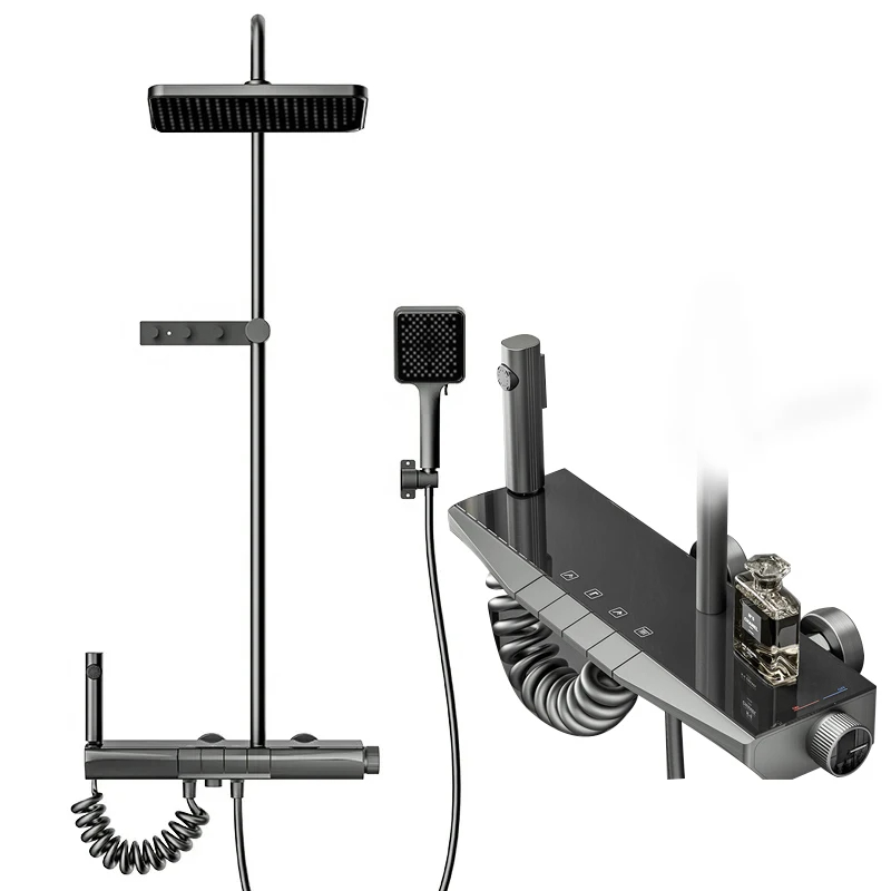 Bathroom Piano Key Shower Faucet Set Temperature Display Knob Type Shower Mixer Set