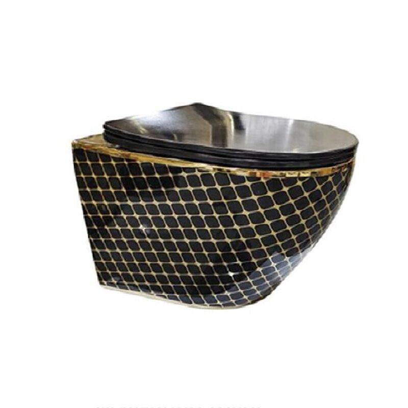 China Sanitary Ware Manufacturer Luxury Bathroom Toilet Water Closet Hanging Black Gold Wall Hung Toilet