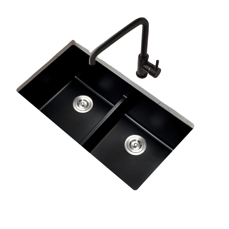 Black Undermount Kitchen Sink Granite Quartz Composite Double Bowl 31 X 18 Inch Kitchen Sink with Low Divider