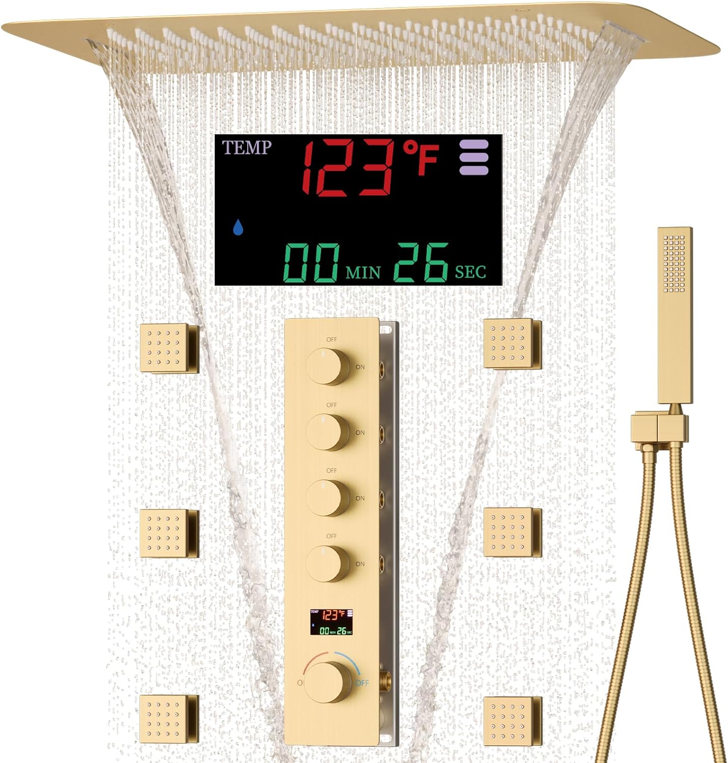 Brushed Gold Digital Diverter Shower Faucet Set System Hand Shower with Accessory for Bathroom Faucet