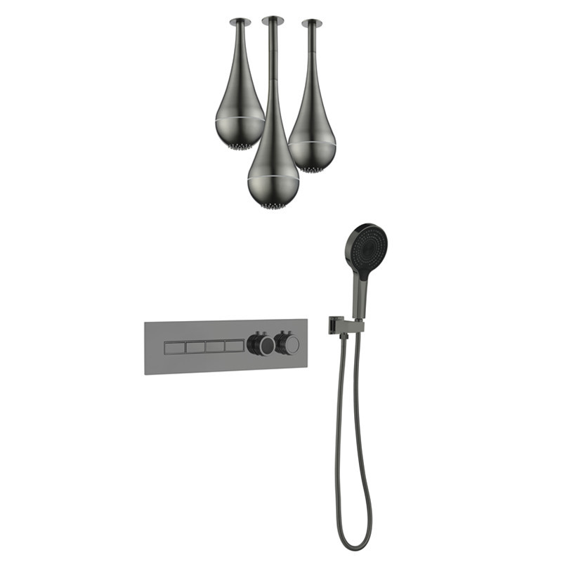 Ceiling Mounted LED Shower Head 4 Functions Luxury Gun Gray Shower Mixer Set for Bathroom