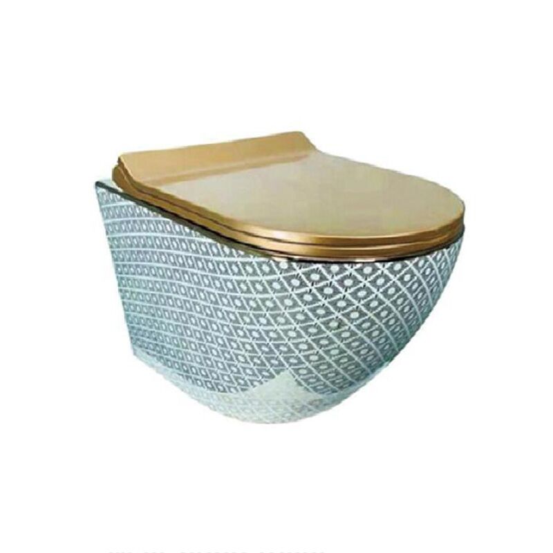 Bathroom Gold plated Wall Hung Toilet P-trap Golden Color Ceramic Electroplating Wall Mount Toilet