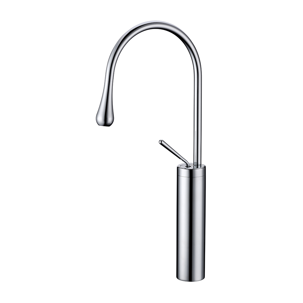 Chrome Brass High Bathroom Faucet Single Lever Deck Mounted Hot Cold Water Supply Water Drop Design Wash Basin Faucet
