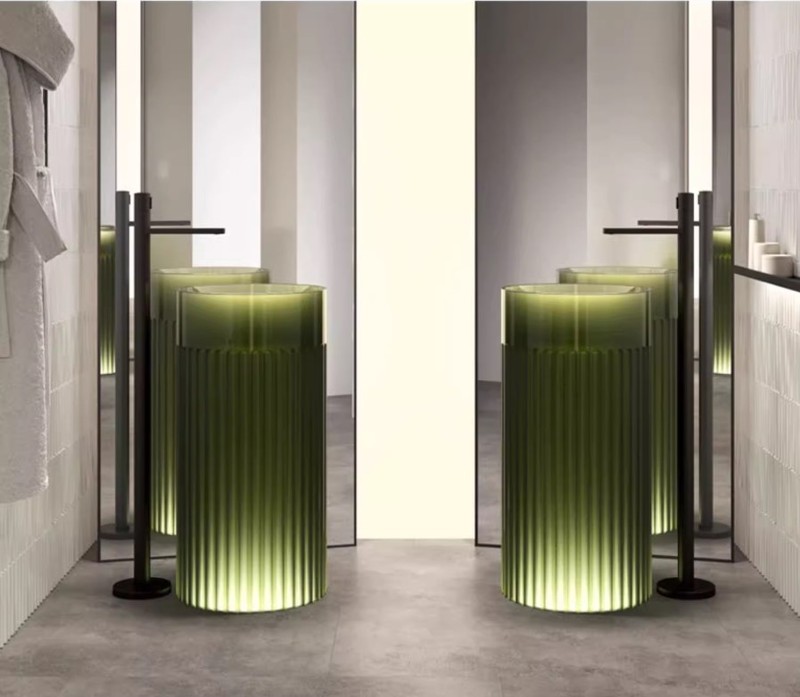 Colored Floor-standing Wash Basin Transparent Integrated Wash Basin Use Luxury Hotel