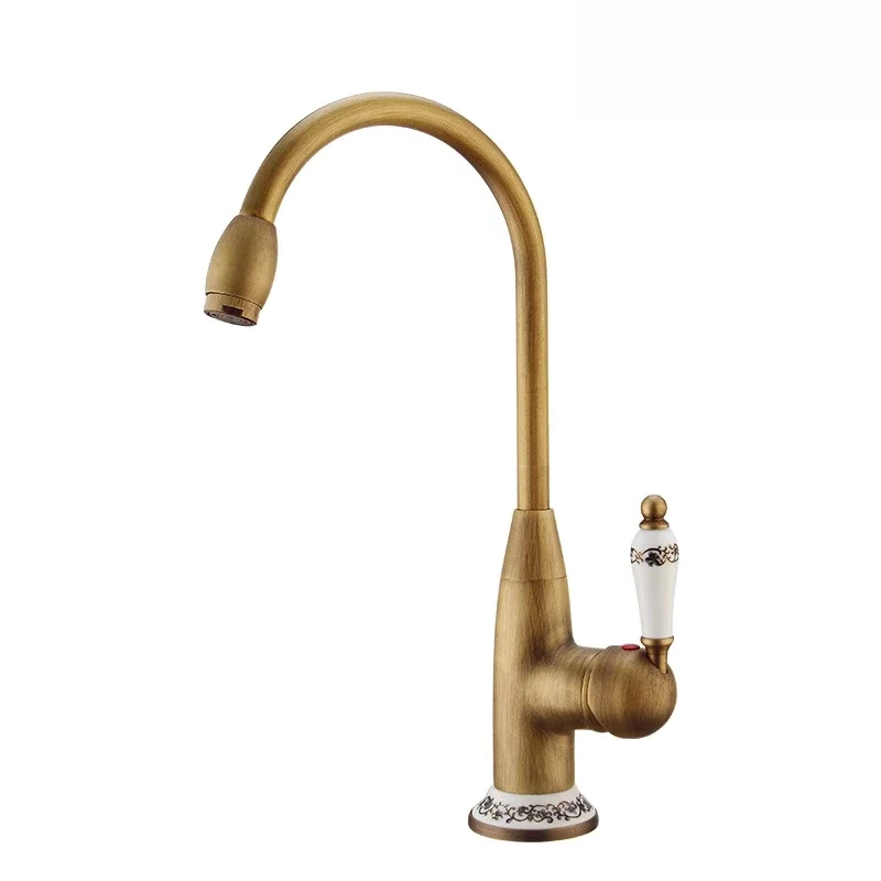 Ceramic Core Valve High Arc Antique Brass Kitchen Sink Faucet