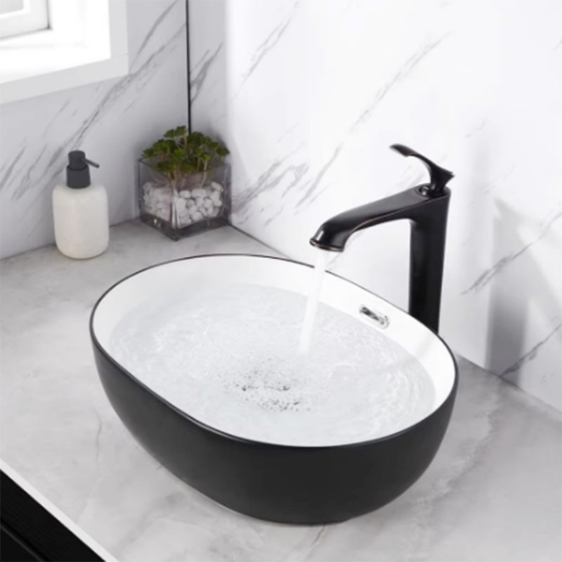 Custom Counter Top Mounted Porcelain Sink Bathroom Matte Black Oval Shaped Basin Ceramic