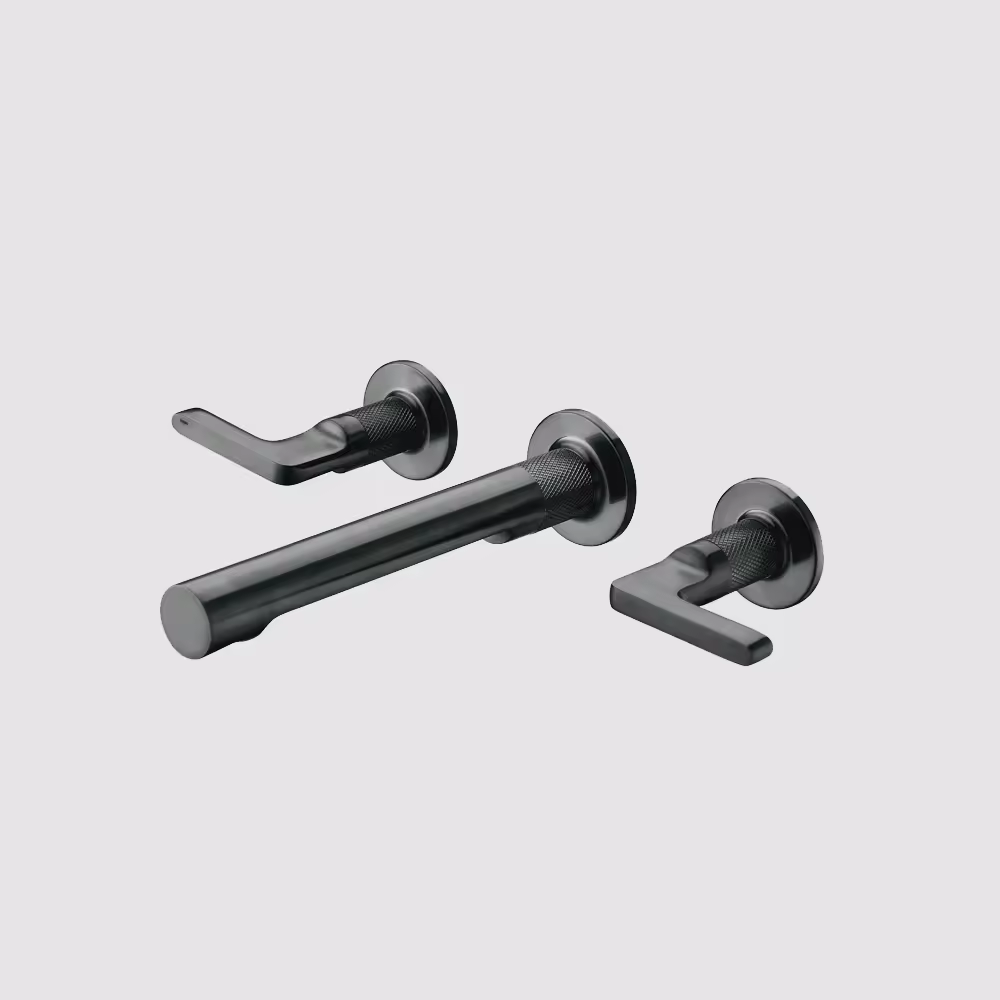 Doppelgriff-Waschtischarmatur aus Messing in Schwarz, zur Wandmontage