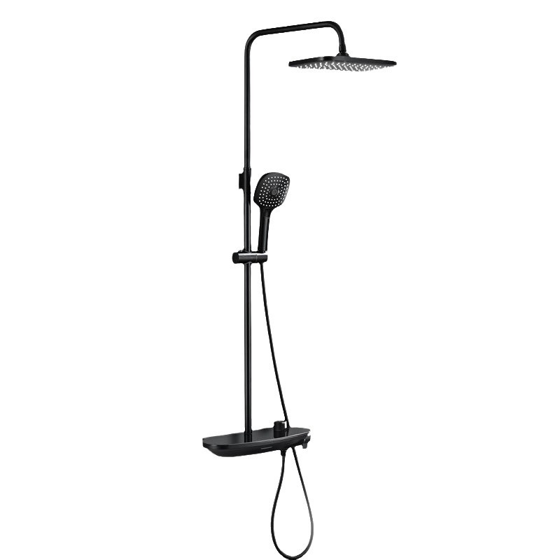 Gun Gray Digital Display Brass Thermostatic Shower Set Ambient Light Soft Handheld Pressure Boost Jets for Household Bathroom