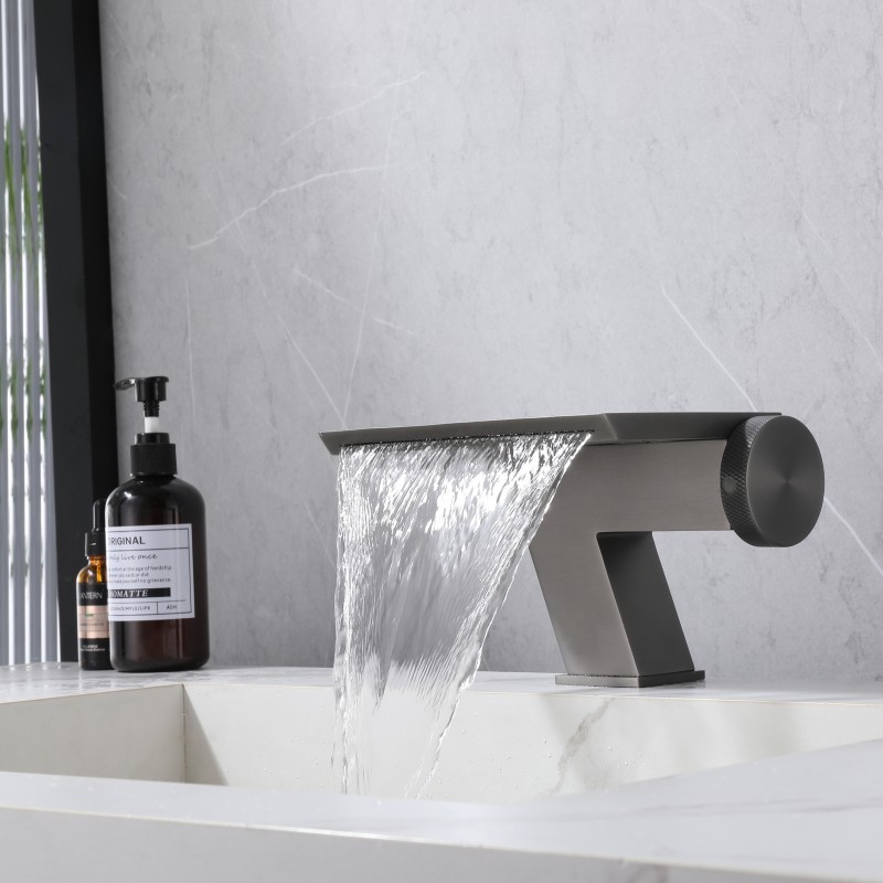 Gun Metal Waterfall Bathroom Sink Faucet Stainless Steel Vanity Water Tap Single Handle Wash Basin Faucet