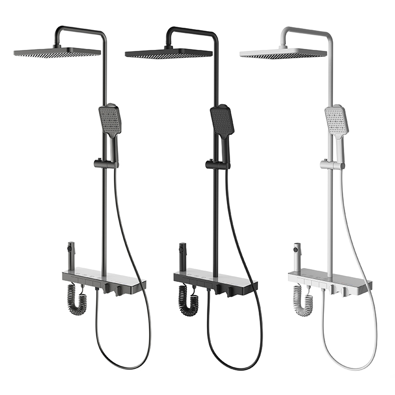 High Quality Single Black Gun Gray Copper Piano Finish Brass Shower System Set Rainfall Shower Head Ceramic Temperature Control
