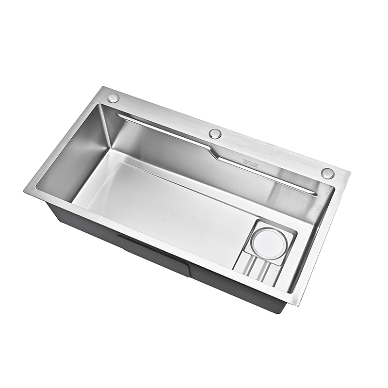 High Quality Stainless Steel Handmade Kitchen Sink Modern Design Single Bowl with Drainer Simple Style Counter Installation