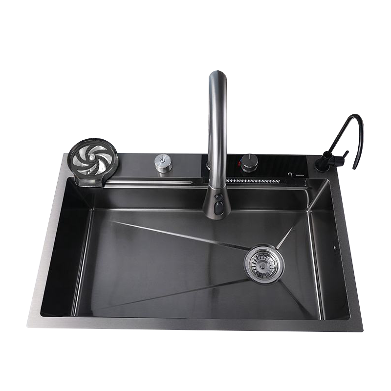 High-Tech Single Bowl Stainless Steel Kitchen Sink with Multi-Functional LED Digital Display Faucet Countertop Faucet