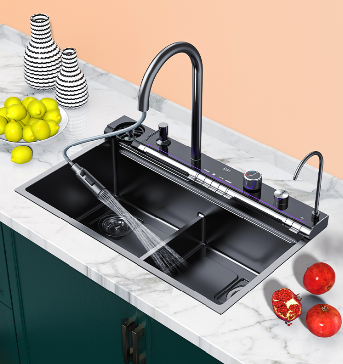Kitchen Sink Nano Black Kitchen Sink Digital Display Waterfall Kitchen Sink Faucet