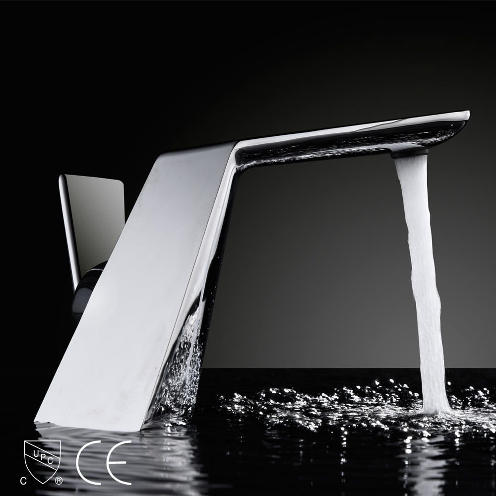 Luxus-Hotel-Design, heiße und kalte rotierende Waschbecken-Wasserfall-Waschmischbatterien, verchromtes Messing, Einhebel-Waschtischarmatur
