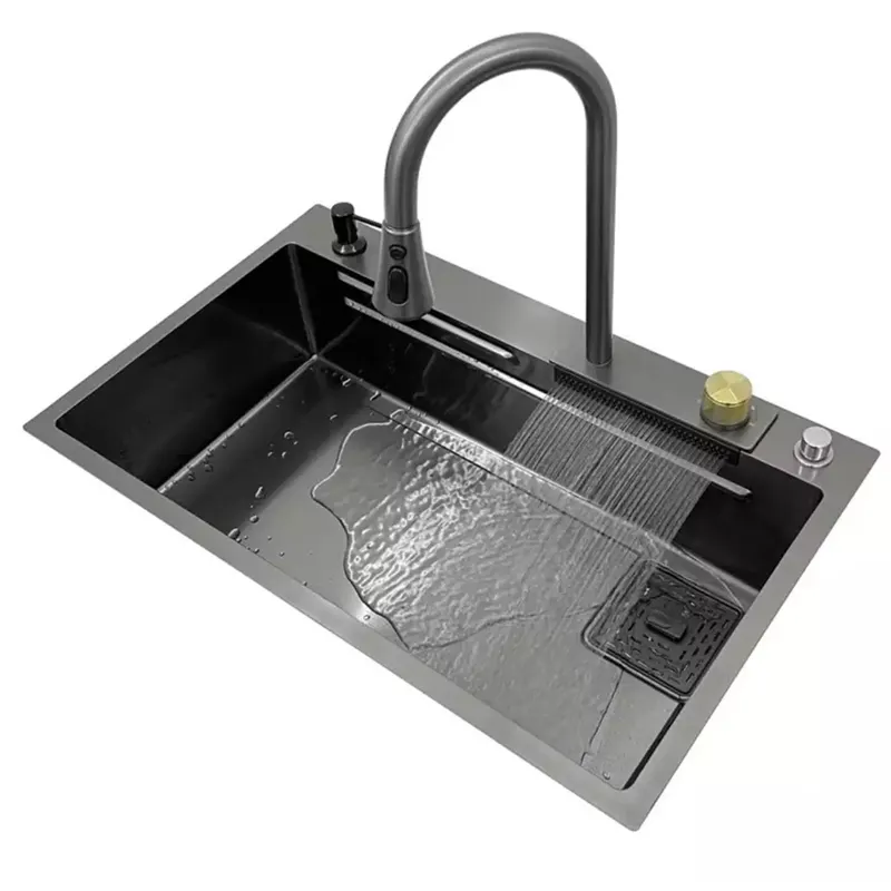 Modern Single Bowl 304 Stainless Steel Nano Hidden Kitchen Sink Set with Waterfall Faucet