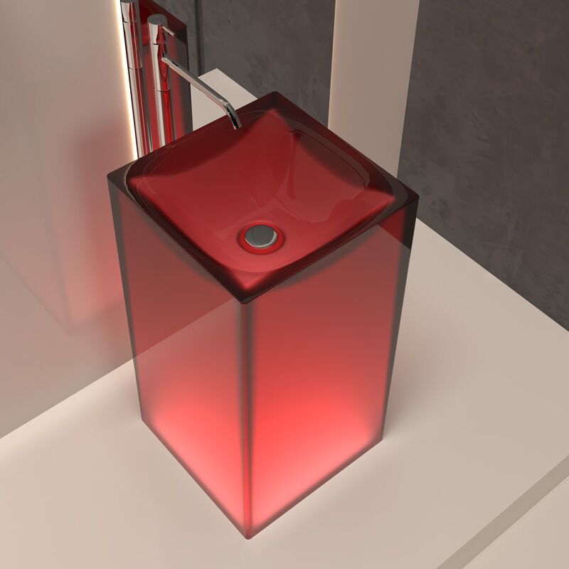 Red Crystal Transparent Hand Wash Basin Freestanding Easy to Install
