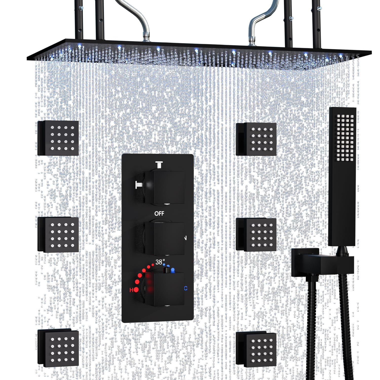 Thermostatic Rainfall Shower System 32-Inch LED Ceiling Shower Head Shower Faucet Sets