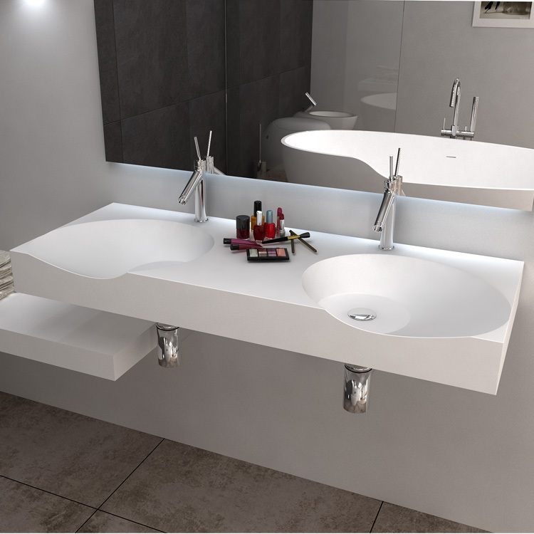 Wall Mounted Hung Long Sink Solid Surface Bathroom Wash Basin