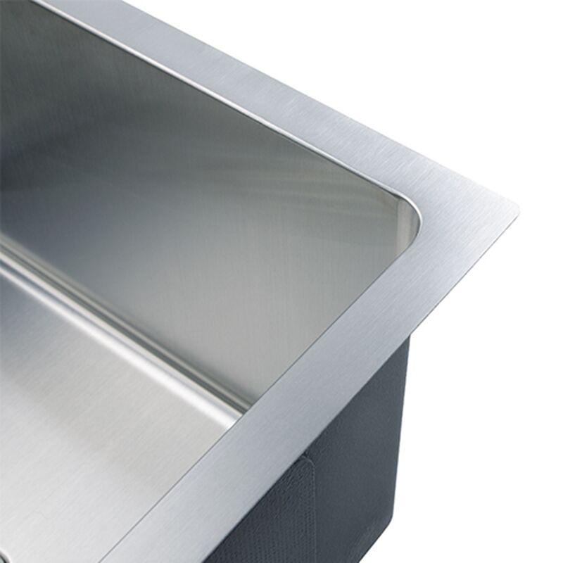 Entwickelt für vollständige Entleerung, mit einem sanft geneigten Boden, der stehendes Wasser in der Schüssel verhindert. Der optimierte Winkel verhindert, dass Glaswaren beim Einlegen in die Schüssel herunterfallen. Waschbecken Angereichertes Silber in der Beschichtung verhindert, dass sich saure Verunreinigungen aus Wasser und Luft in den Edelstahl einlagern. Unsere geheime Formel bringt die Waschbecken höchste Kratzfestigkeit und Oberflächenintegrität wie nie zuvor. Tiefe Einzelspüle zum Auffangen von Spritzern und für Ihre größten Töpfe und Geschirrstapel sowie Ihr größtes Küchengeschirr.