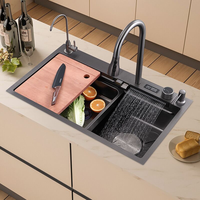China Sink Factory Wholesale Kitchen Sink Modern LED Smart Digital Display Multifunction Square Counter Stainless Steel Kitchen Sink