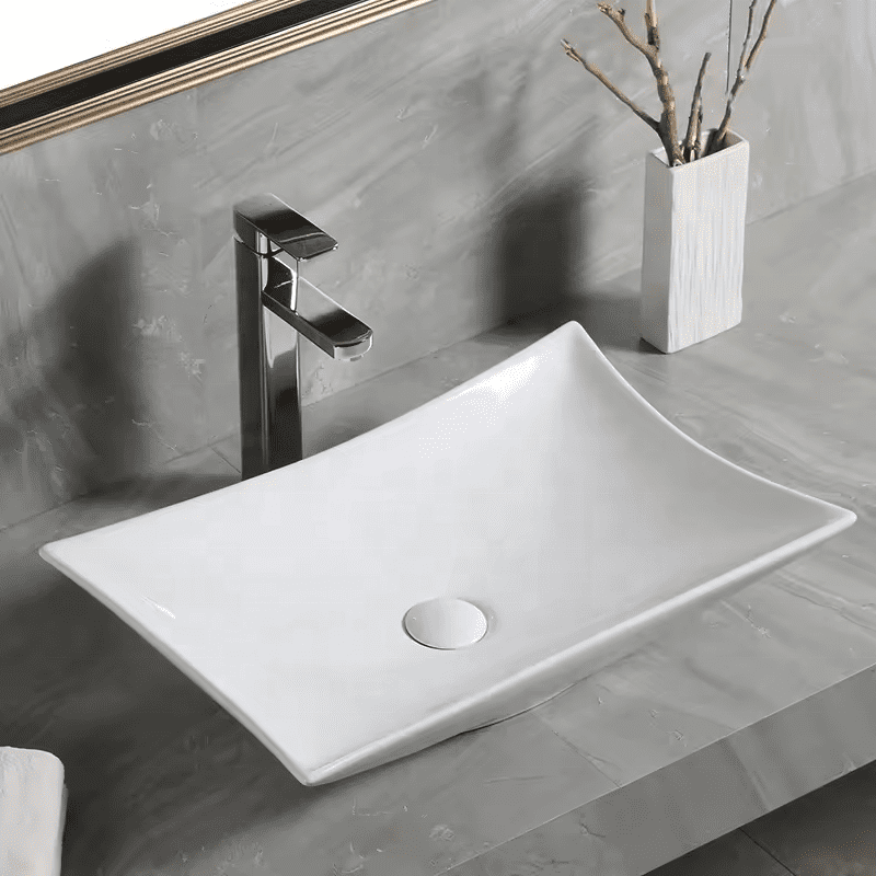 Bathroom Basin Hot Selling Ceramic Glossy White Above Counter Basin Irregular Rectangle Countertop Sink