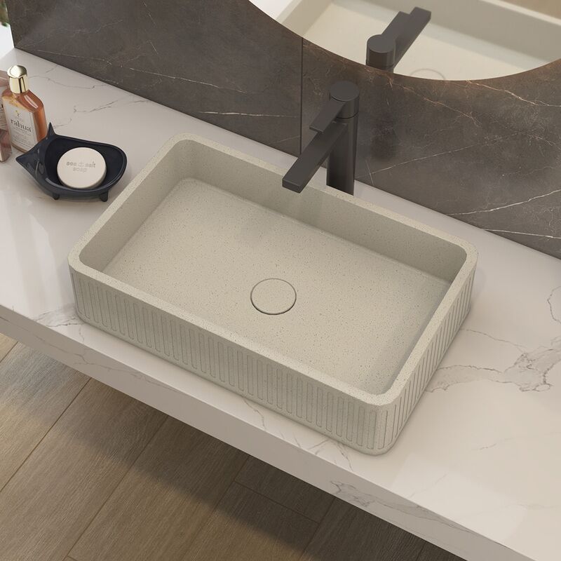 Bathroom Modern Handmade Bathroom Concrete Basin Hotel Grey Wholesale CUPC Rectangular Stripe Concrete Basin