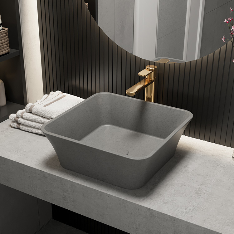 China Wholesale Price Square Lavatory Bathroom Vessel Sink Art Basin Luxury Concrete Above Counter Top Wash Basin