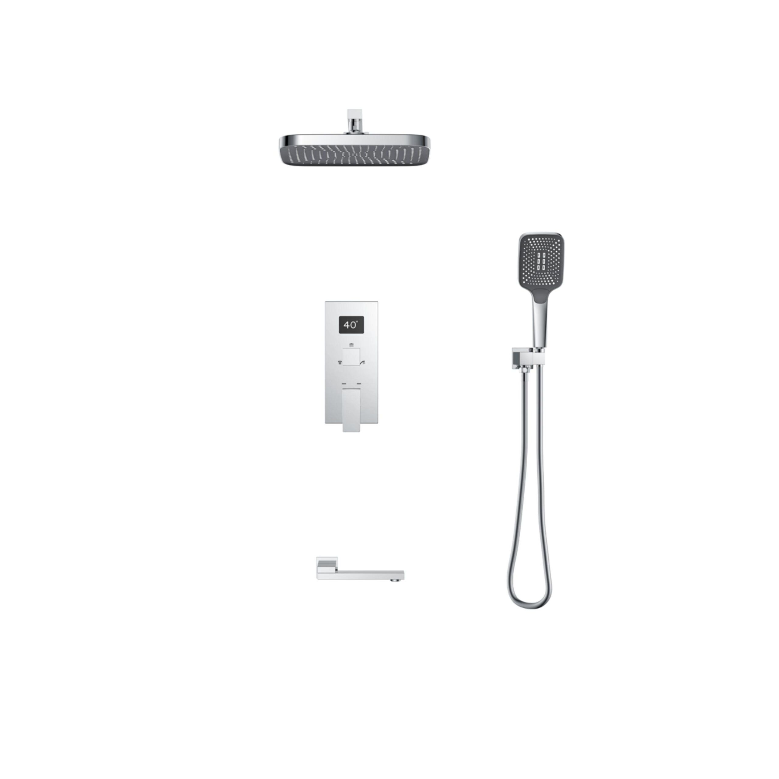 Juego de ducha con pantalla digital cromada para baño de nuevo estilo, juego de ducha de temperatura constante con 3 funciones ocultas de latón para hotel