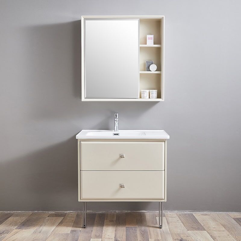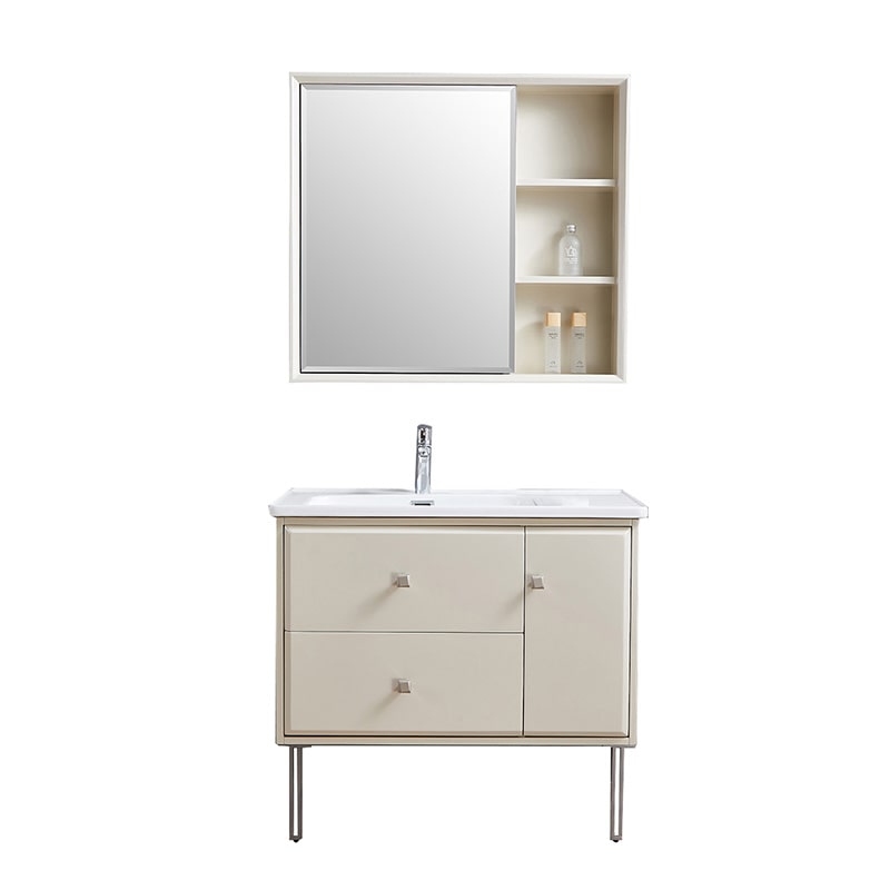 Mueble de baño adecuado para baños de tamaño único y espacio limitado. personalizado con dos materias primas, seis opciones de tamaños, pintura con acabado de superficie impermeable, tres selecciones de materiales para lavabos, un total de más de 18 diseños diferentes.