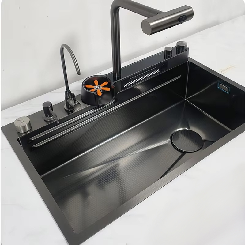 European Multifunction the Kitchen Sinks 304 Stainless Steel Modern Gun Grey Waterfall Rainfall Single Bowl Kitchen Sink Set