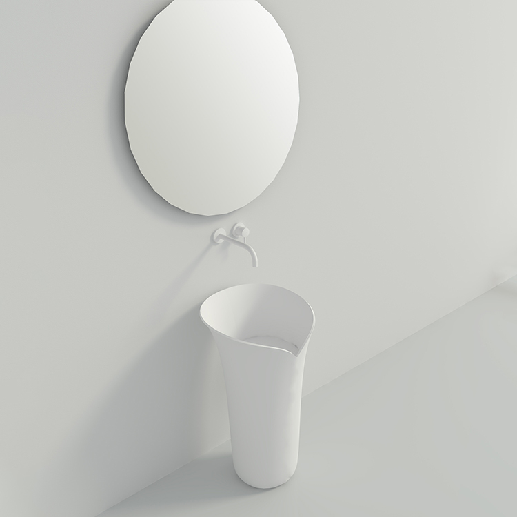 Factory Price Water Tear Round Shaped Design Pedestal Solid Surface Washbasin Resin Marble Stone Washroom Lavabo Bathroom Sink