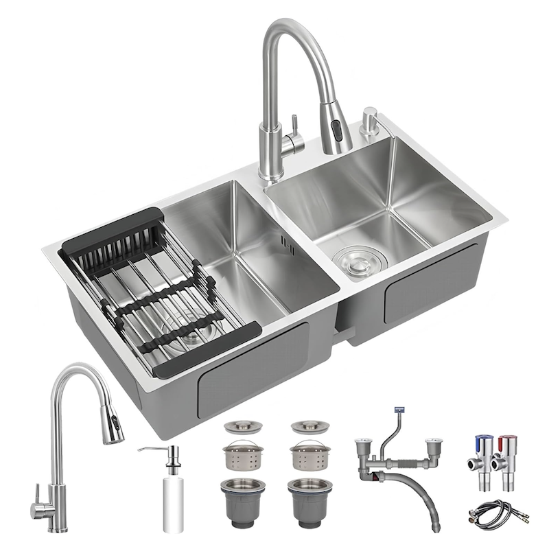 Handmade Stainless Steel Brushed Nano Sink No Fading Double Bowl Undermount Kitchen Sink