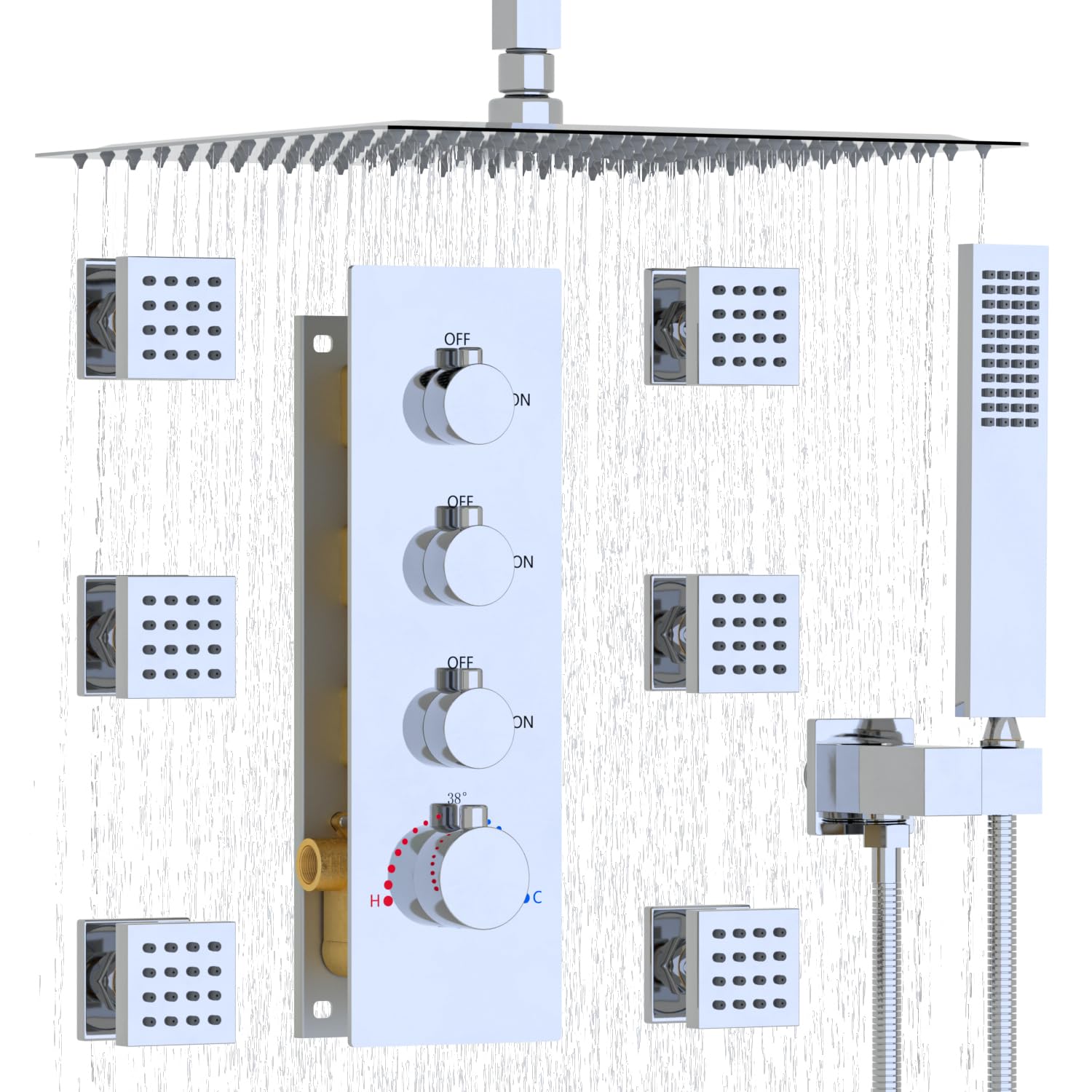High Quality 16 Inch Rain Shower Head System with Body Spray Thermostatic Hot Cold Water Shower Combo Set