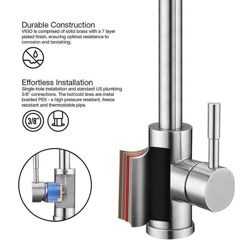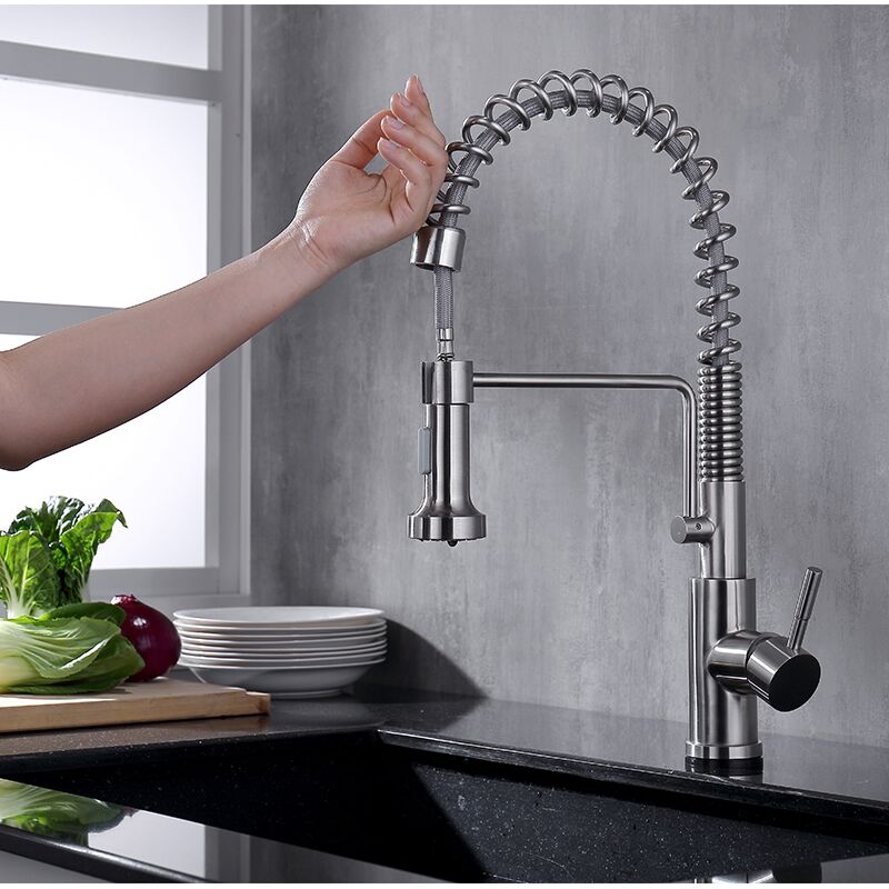 El comercial grifo del fregadero El resorte se fabrica bajo un tratamiento térmico especial, puede evitar la deformación y se mantiene perfecto todo el tiempo. Grifos de cocina para vehículos recreativos de alta calidad que están diseñados para un rendimiento duradero, buen funcionamiento y brillo, le permiten evitar la molestia de cambiar uno nuevo en un poco tiempo.