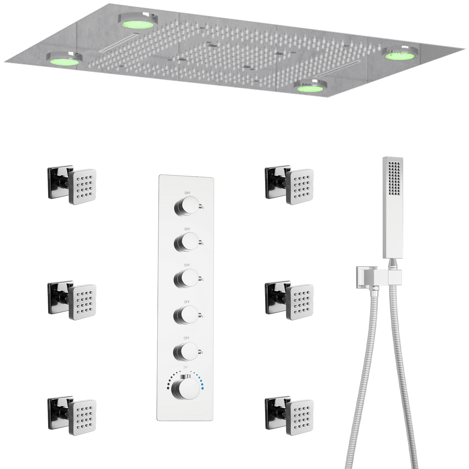 | Spray Pattern: | Rain, Soft, Pause, Jet, Massage, Mix, Shampoo |