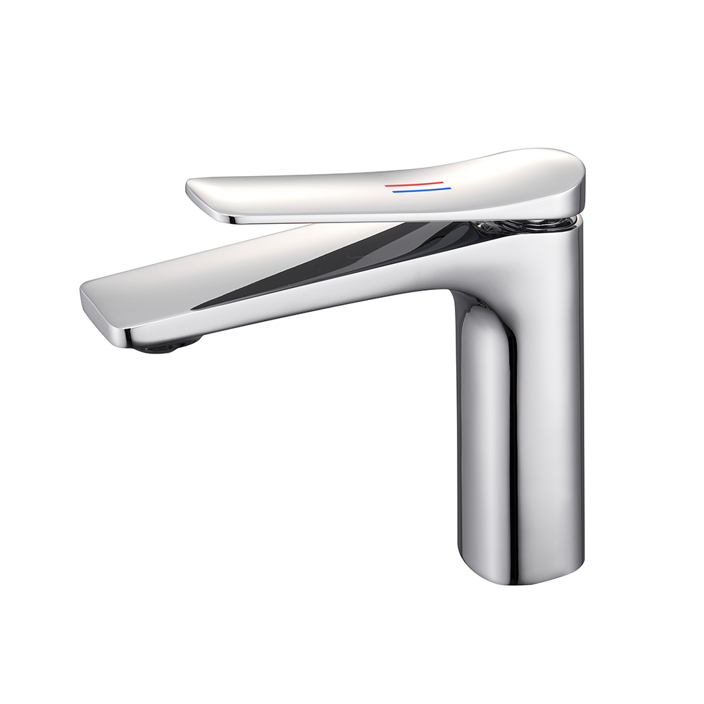 Grifo monomando para lavabo de baño con mezclador de agua fría y caliente de latón cromado pulido de diseño de lujo