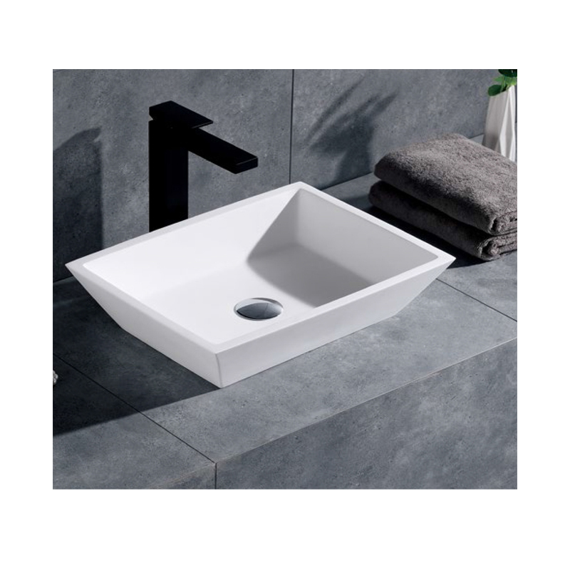 Modern Art Basin Marble Sink Rectangular Countertop Mounted Bathroom Sink